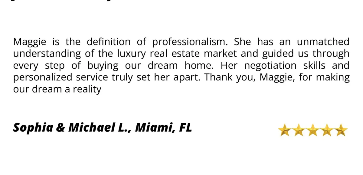 Elegance. Strategy. Results. Maggie redefines how luxury homes are sold. aggie redefines luxury living and provides a seamless experience for our esteemed clientele. Maggie is agent specializes in exquisite properties that embody elegance, sophistication, and unparalleled craftsmanship. We pride ourselves on delivering exceptional service, personalized attention, and an unwavering commitment to exceeding our clients’ expectations.